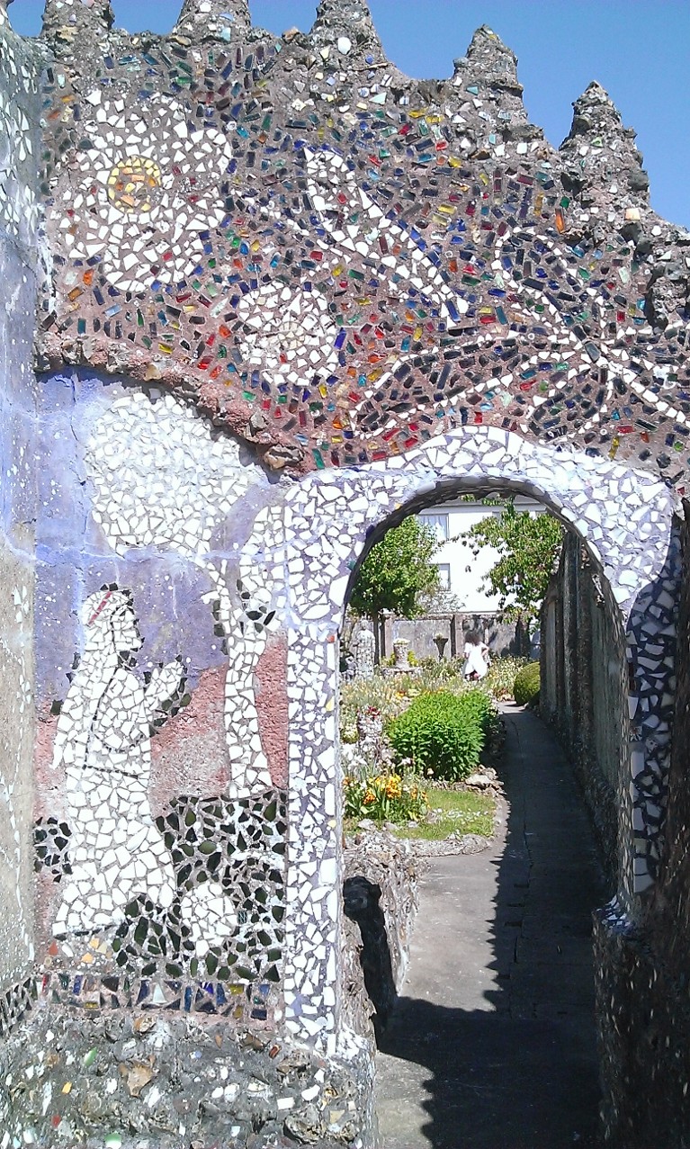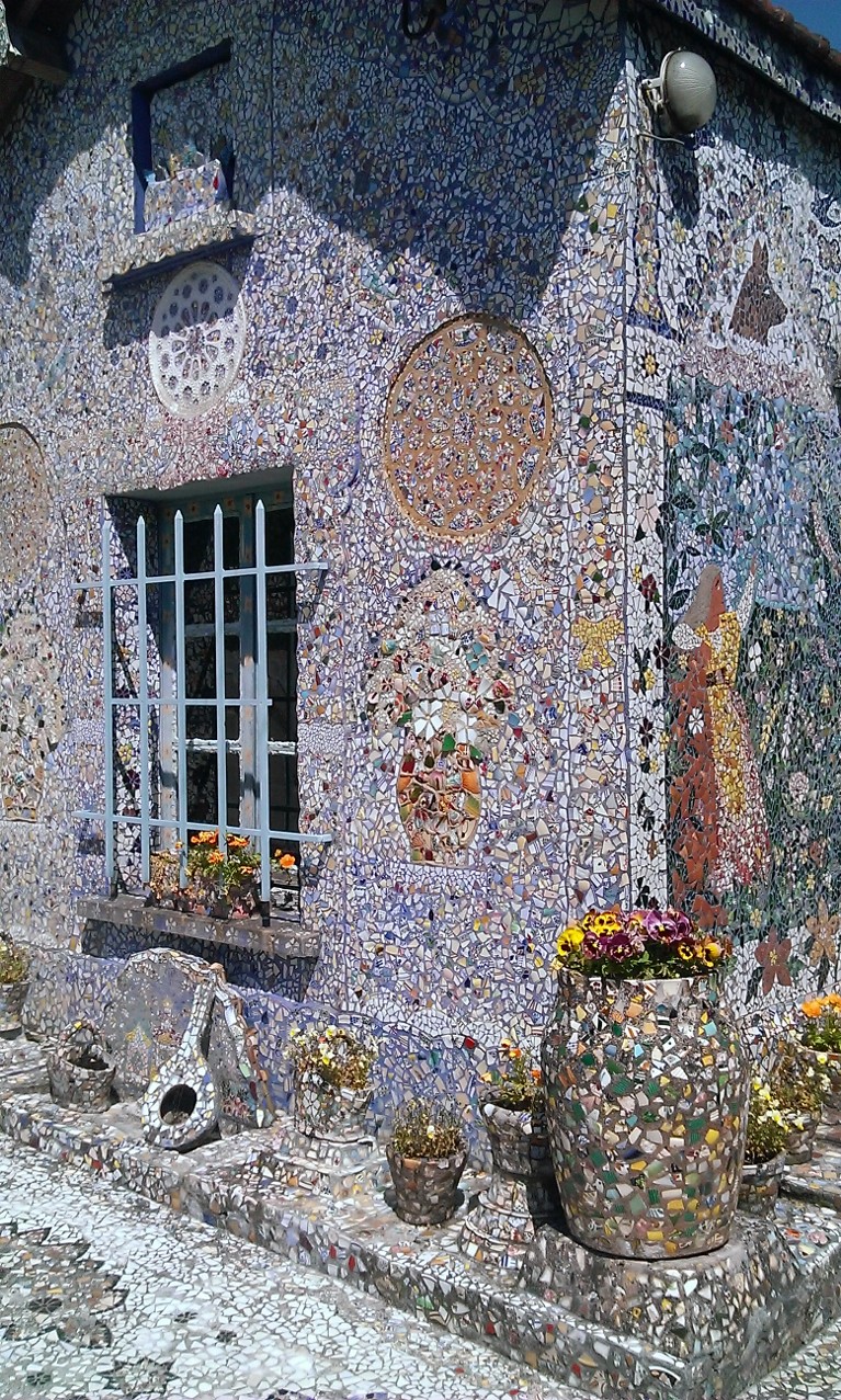 In May, I was lucky enough to have the chance to visit Raymond Isidore’s La Maison Picassiette in Chartres, France. I have mentioned Isidore’s tremendous creation briefly before (click here), but here I wanted to share some photographs I took during my visit with you. I don’t want to write too much about the site here, as you can find out some excellent information on the Spaces Archive page (click here), but the mosaic house took almost thirty years for Isidore to complete, earning him the name ‘Picassiette’ – a twist on the French term for scavenger (pique-assiette) and a reference to Pablo Picasso and plates (assiette). Please feel free to share your experience of Isidore’s Picassiette in the comments below, or by emailing kdoutsiderart@yahoo.com.