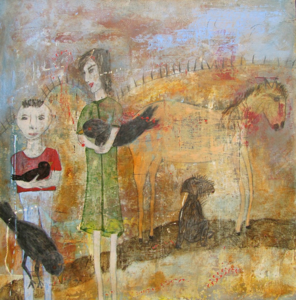 “I am a storyteller and had to learn to tell a story with paints instead of with words. It is my desire to express from a true place and create an emotional response to what I see. It’s not always realistic, because I see this world in an intuitive-abstract way. And it is the feeling that touches my heart that I want to portray in my work no matter what medium I am working with. Every mark I make is a combination of all my life experiences. Each piece contains a lifetime of aesthetic experience and interest for me, a successful piece is one that opens a heart and creates a smile.”