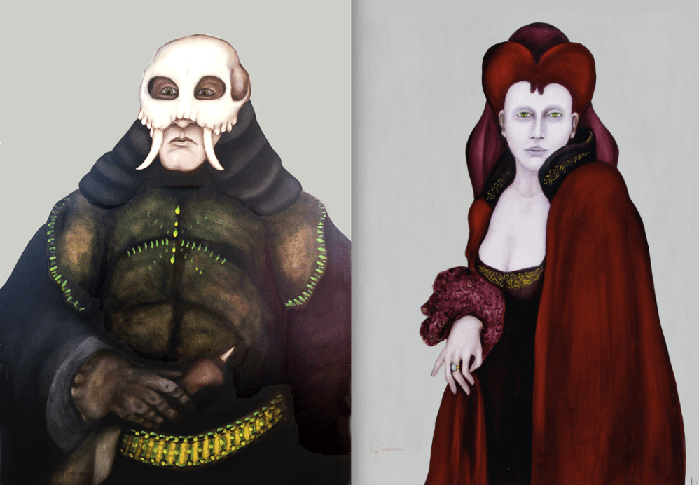 Dad had been collecting really weird antiques from as far back as I can remember. No matter which corner of the house you came around, you knew some bizarre gorgon or another would be waiting for you. So when dad started painting, of course, it wasn’t nice landscapes or flowers or anything like that. It was Dracula, and people who were half animal with purple skin – reminiscent of figures from the weird fairy tales he had told me as a child.
