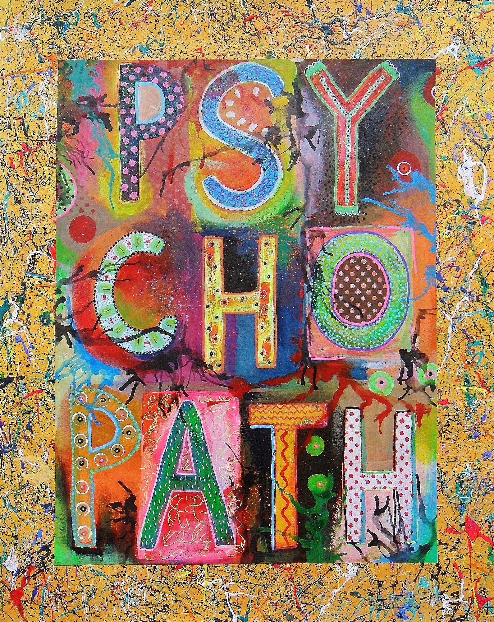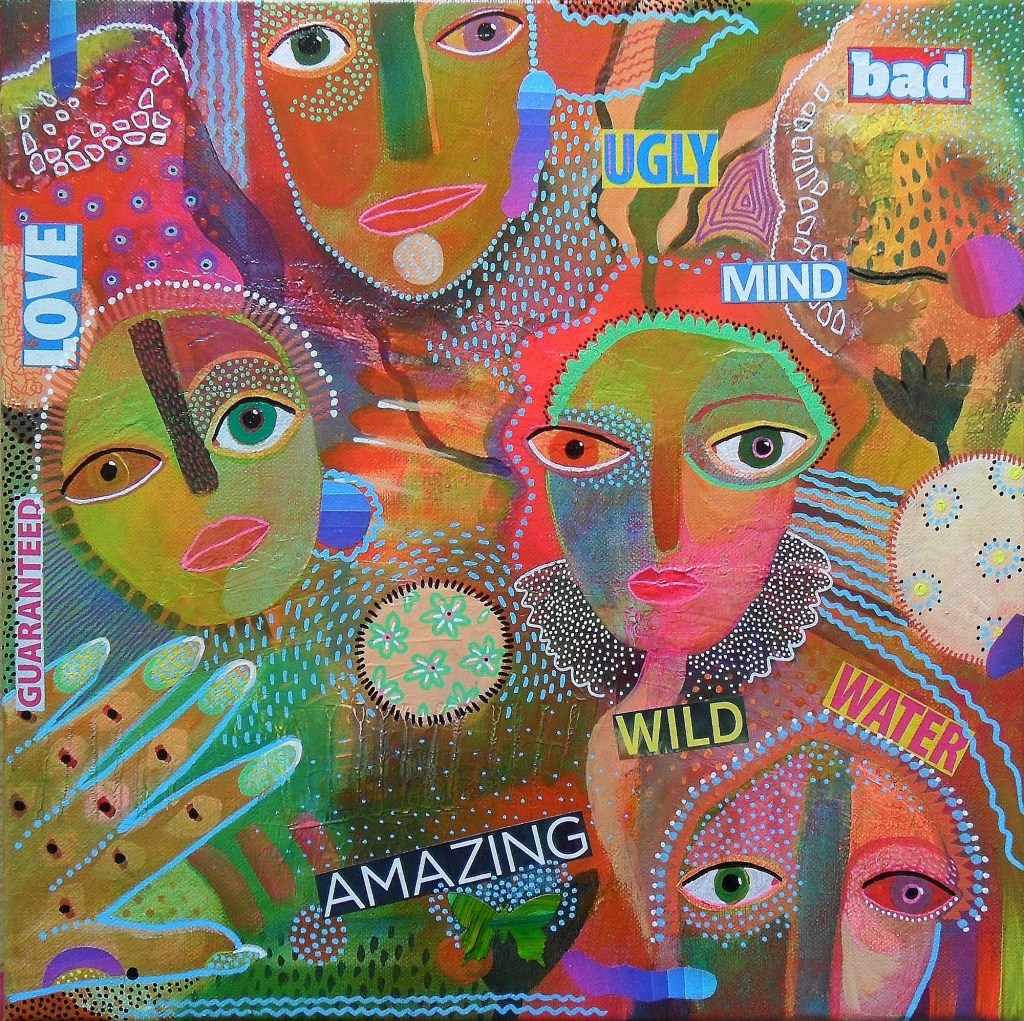 I enjoy raw art (outsider art?) mostly and I have many favourite artists who all must influence me subconsciously, in one way or another. The list would probably be too long to mention. I have been told that my work is kind of ‘edgy’ or slightly disturbing and I would sort of agree with that – I wouldn’t say my life’s been easy. I got myself into a very bad, long term situation which was incredibly difficult to get out of. I have noticed that recently themes have been coming through my work which relate to the trauma I and my children endured throughout this terrible time. I am sure that being a survivor does have an influence in what I paint and the way I paint. I am finding that being able to refer to these awful times , in my work, is helping me to heal in a way.