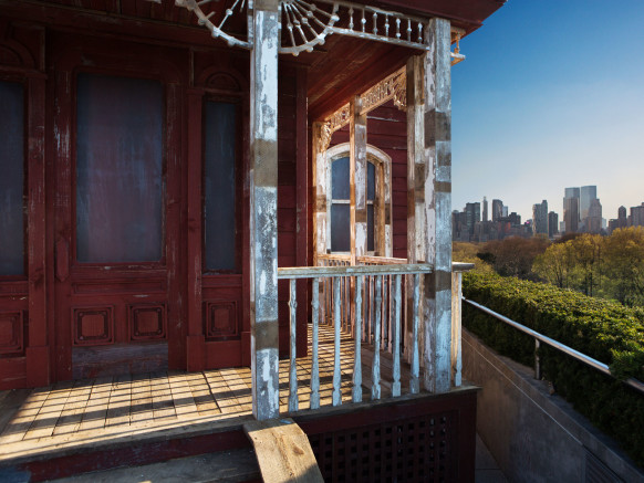 The first reaction of anyone who sees themselves as “progressive” when first encountering Cornelia Parker’s current installation at Frith Street Gallery (28 April 2017-21 June 2017) will doubtless be euphoric. All the right boxes are ticked- it’s a mocked-up nightmare of the USA under President Donald Trump. In 2016 Parker was commissioned by the Metropolitan Museum of Art to create a site-specific installation for the museum’s roof garden. The ensuing work, Transitional Object (PsychoBarn) was apparently inspired by the paintings of Edward Hopper and by the Bates family’s mansion from Alfred Hitchcock’s 1960 film Psycho. According to the press blurb “PsychoBarn loomed on the city’s skyline as a harbinger of things to come – signalling that all was not so well in the American psyche.”