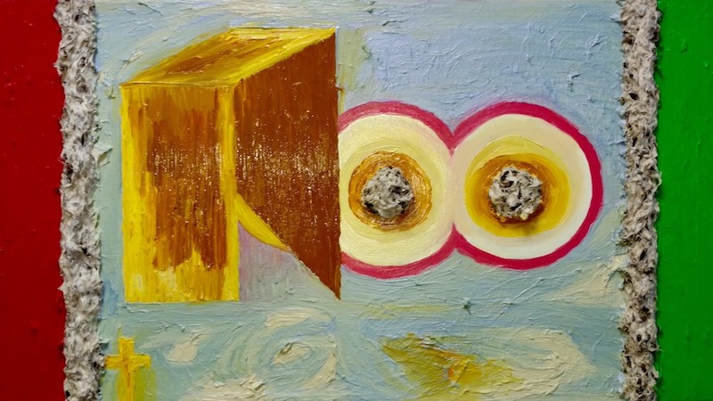The starting point is with myself, my body, the internal, external, nature and the world around me, I also sketch on paper and digital, then I transfer to canvas, using oil paints straight from the tube, later adding found objects and dried insects.
