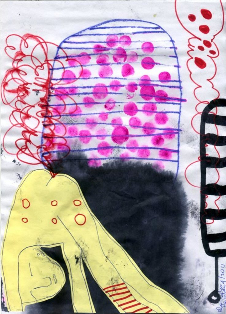 Oh …. a long long time ago ….. ever since I was a child I drew strange threadlike beings with huge eyes, who fought each other in unpredictable and gory ways. I always liked to experiment, invent, create with everything, looking around, collecting objects, stones, ropes, threads …. cutting, coloring, gluing, sewing, never knowing what I was doing and where I was going with what I was doing. New doors were always opening up, new worlds …. a kind of continuous, elusive, untranslatable catharsis … a serene refuge, a tower impenetrable to others, accessible only to me, a joyful place to be free … my splendid crystal refuge, this has been art and my creating for me so far.