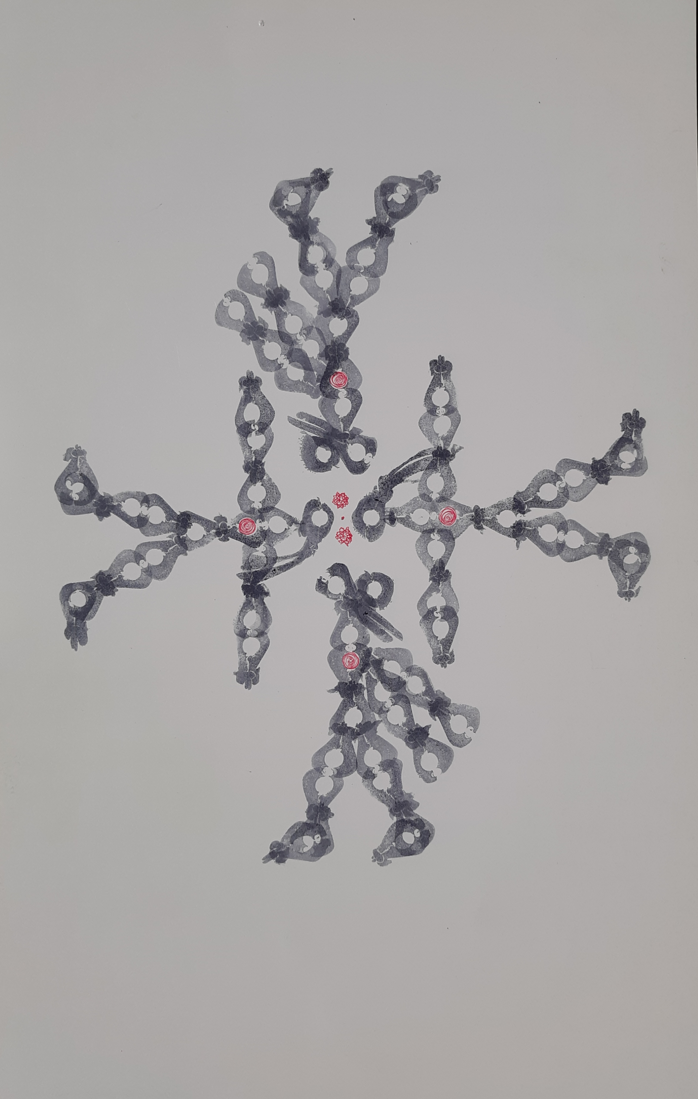 I had no interest in creating until my father died in November 2016. I was 45 years old and a few months later I felt an overwhelming need to create. I have Tourette Syndrome and for a time, in high school, I kept my tics manageable by redirecting my tic energy into making aitch shaped dodecagons in the margins of notebook paper. It was very satisfying to complete the circuit around the aitch and it calmed my other tics. In 2017, after 30 years, that tic, or tic management strategy, re-emerged and the aitch shaped dodecagons started pouring out again. This time they coalesced, interacted, became structural, became beings or otherwise meaningful. This was the beginning of the Aitchverse, a plane of the multiverse where the aitch shaped dodecagon is the basic building block and/or mathematical X. I have been making these renderings in various modes ever since.