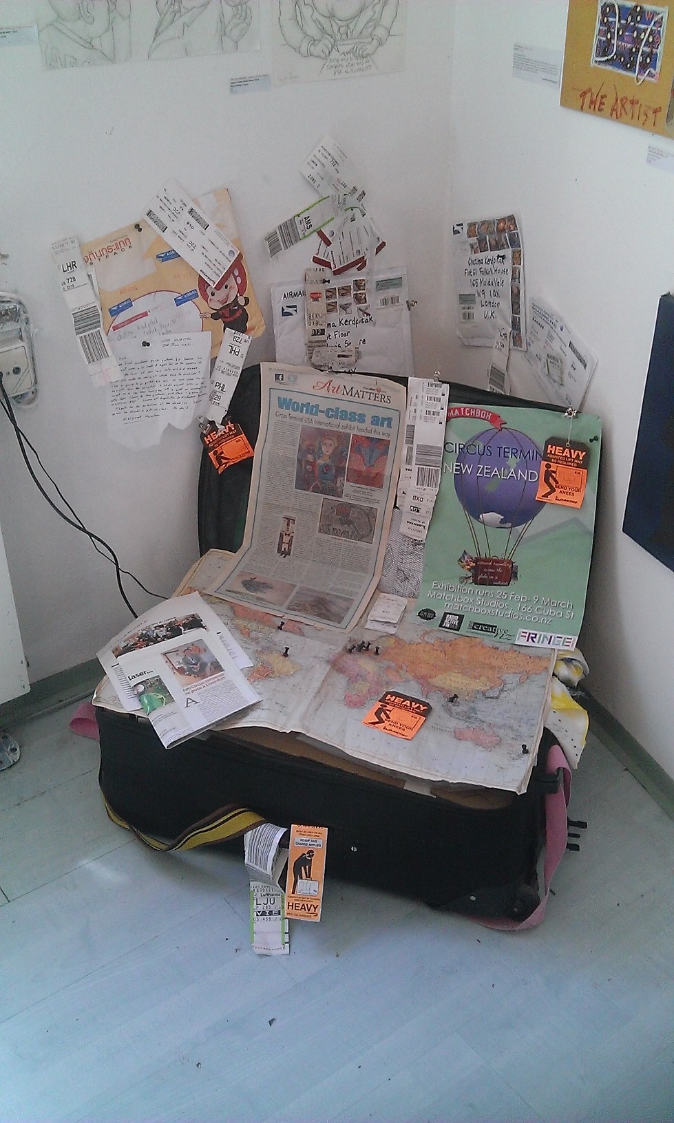 In every country, local artists are invited to participate in the exhibition and other collaborative activities; an indicator of how the project has grown so fruitfully during its lifetime. Once the artist has had work exhibited in their home town, they are invited to put their work in founder and curator Chutima Kerdpitak’s suitcase to be shown on the next legs of the tour. Alongside Chutima (Nok), each regional exhibition has a lead artist –in New Zealand it was Wellington artist Lynn Todd, in London Miranda Sky, and in Spain Gustav Glander – as well as invited artists who exhibit alongside the international collective. The project has had one guest artist; Sue Kreitzman in London.