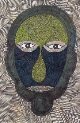 Wilson’s works are iconic within Outsider Art; and his unique cross hatching technique instantly makes them recognisable as Wilson’s. The work is usually centred around a face; which he called ‘Greedies’, which is surrounded by natural forms such as flowers or birds. His work is predominantly very bright, with clashing colours and thick black lines.His earlier work is much freer in terms of line, with his later work becoming more visible controlled with tighter, more intricate line detail.